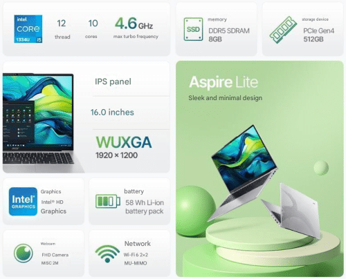 Acer Aspire 16 Core i5 Intel 13th Gen